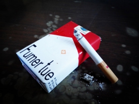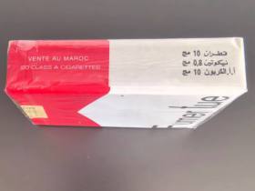 摩洛哥软红万宝路,算是除了美万外比较喜欢的万之一了。熟悉万宝路的都知道万的产地各种各样,bj,cn,la,ta,sf等等,这一款摩洛哥软红万是SF码瑞士产的,属于中高端价位的万宝路了。首先包装我就很喜欢,没有恶心人的警示图,也没有占一大半烟盒包装的英文标语,有的只是Fumer tue这句话,去百度了一下,是法语里面“抽烟有害健康”的意思,摩洛哥作为原法国的殖民地,法语也是官方语言的一种,所以也解释的通为什么一个非洲国家的烟盒子上用法语了。这款烟焦油量是12mg,对我来说刚刚好,劲道中等偏上,点上一根,烟气饱满,万宝路特有的味道很浓郁醇厚,在美税万宝路价格那么高的现在,抽这个其实也不错。