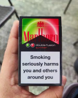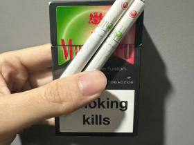 万宝路西瓜双爆,个人感觉口感比较丝滑,捏开爆珠有一股浓郁的西瓜味,像小时候吃的泡泡糖;对于不厌恶混合型味道的人来说,爆珠的香味和烟草本身的味道有一个很好地均衡。