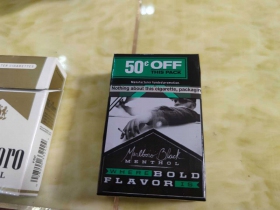 烟盒下面写着大胆且平衡的薄荷醇