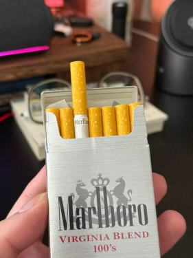 19产美税100s弗吉尼亚调和,一款有山形标的万宝路,拉丝银还是帅的,如果是拉丝黑就更漂亮了。可惜有点干巴跑油,香气丢差不多了,不过还是能感受到地道的万味。