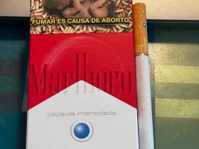墨税100硬红万宝路,有爆珠,薄荷味的,捏了爆珠味道没人家正经做爆珠烟的牌子味道香,个人喜欢不捏爆珠(不过味道也不是很好,勉强能抽的样子,爆珠烟的烟丝懂得都懂[表情]),买来玩玩收藏个盒子可以抽的话不推荐!