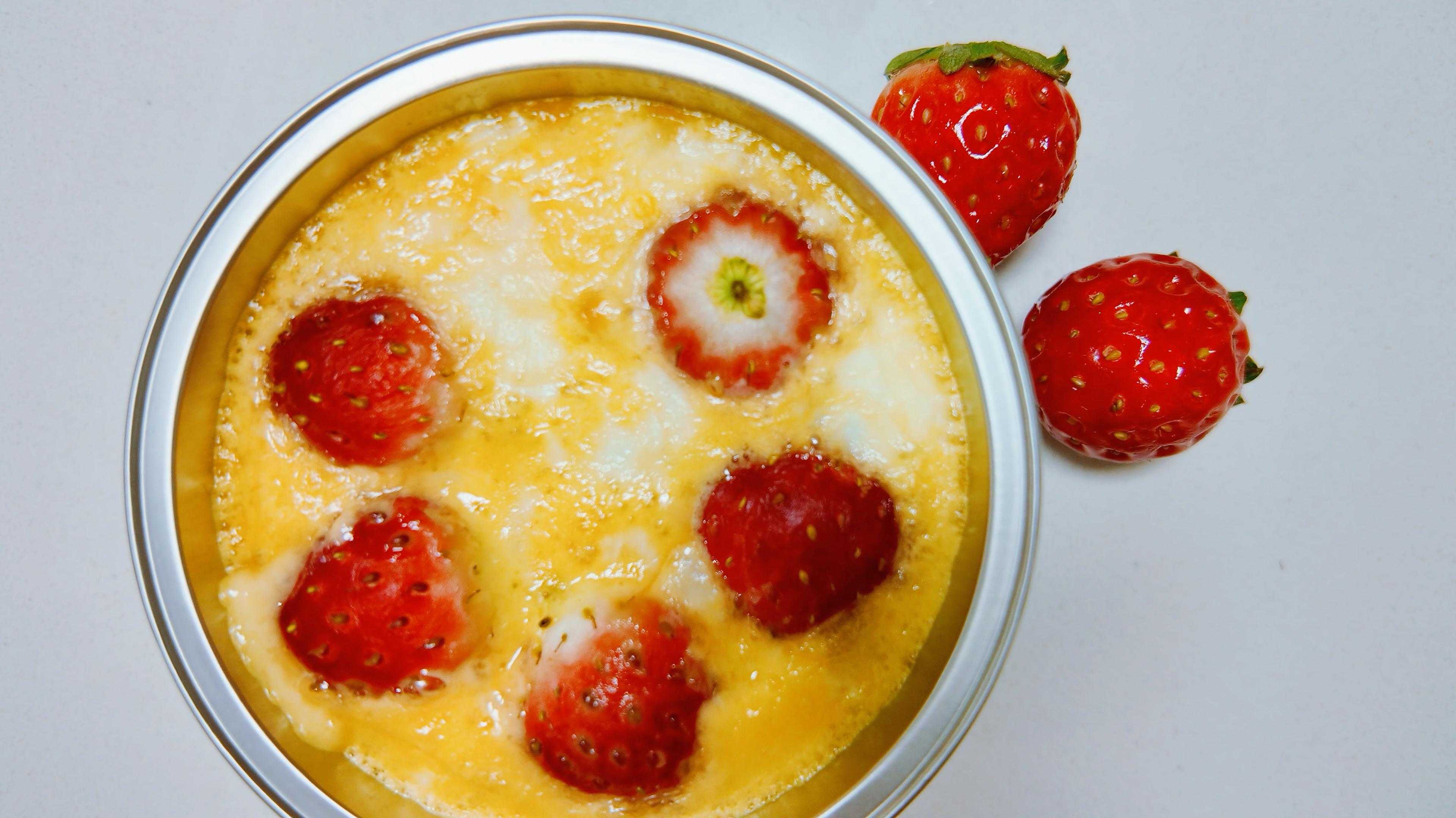 食材:草莓适量、鸡蛋1个、酸奶50克,淀粉30克,白砂糖8克。